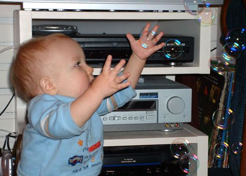 Previous | Home | Next Back in Columbia, MD for a visit, Julia McCready blows bubbles: Will is amaaaazed! Photo by Richard McCready.